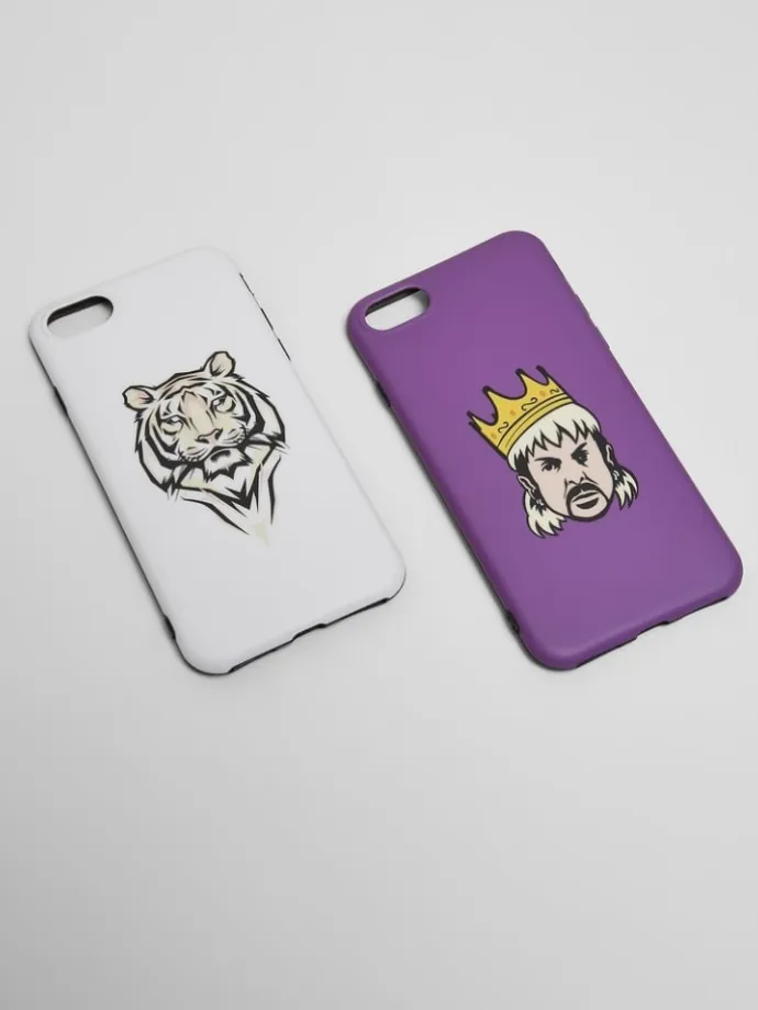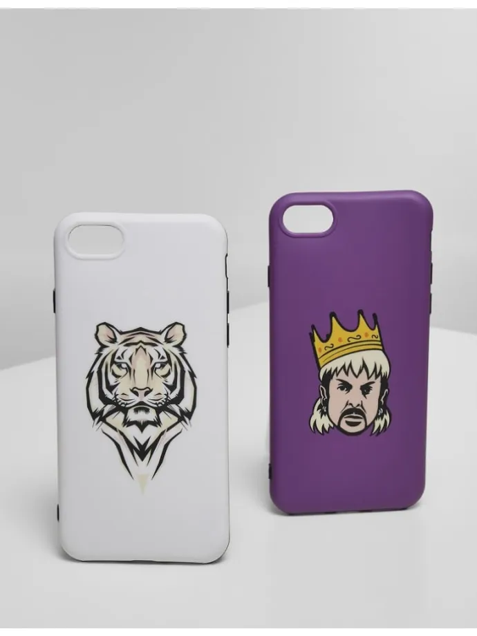 Dieses Handyhüllen Zweierset für Smartphones der Modelle iPhone 6,7 und 8 ist ein echter Hingucker und an Großkatzen angelehnt. Die zwei Farbvarianten gibt es mit den passenden Motiven: einem aufwändigen Tigerkopf sowie dem Dompteur samt schräg sitzender Krone. Die angesagten Handyhüllen bestehen aus TPU Material, was sie besonders robust und stoßfest macht.