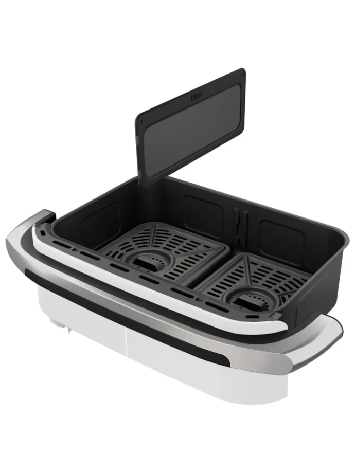 Die neue Ninja Foodi FlexDrawer, die Heißluftfritteuse mit extra großem Fassungsvermögen, passt sich jeder Mahlzeit an.