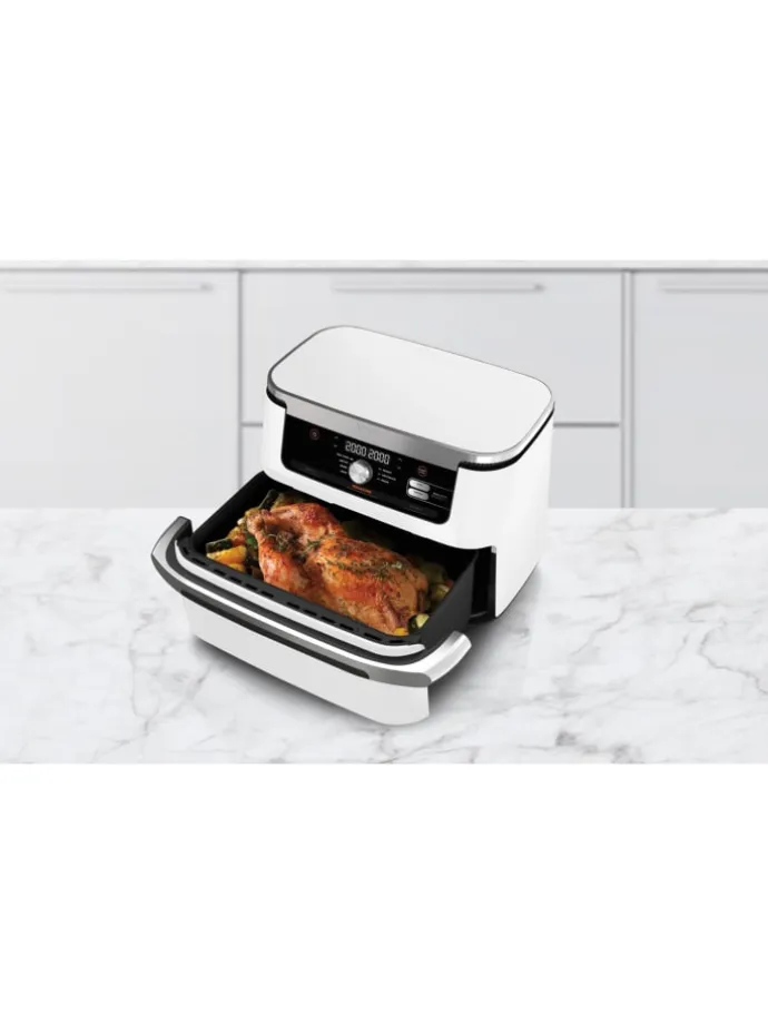 Mit der extragroßen 10,4-Liter-MegaZone haben Sie jetzt viel Platz für größere Speisen, die Sie normalerweise im Backofen zubereiten würden. Von einem Brathähnchen mit knusprigen Kartoffeln bis hin zu einer vorbereiteten Lasagne in Familiengröße. Das Gerät ist groß genug für eine Brat- oder Auflaufform und ermöglicht die Zubereitung von Lachs und Süßkartoffeln, geröstetem Gemüse, eine große Portion Brownies und vielem mehr.