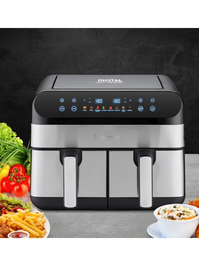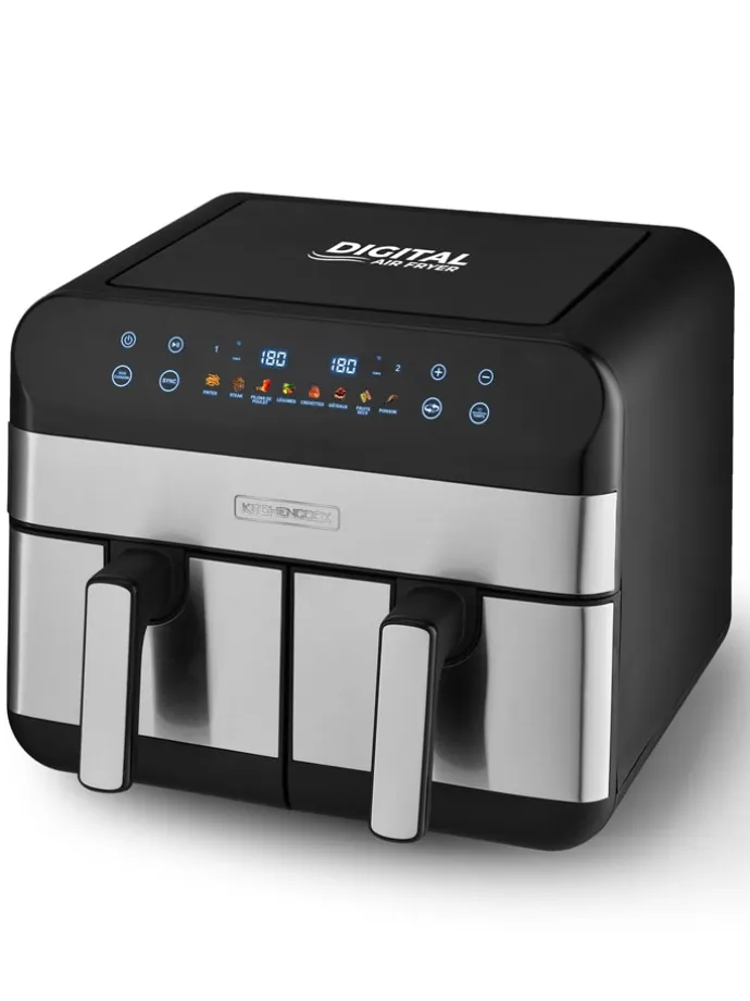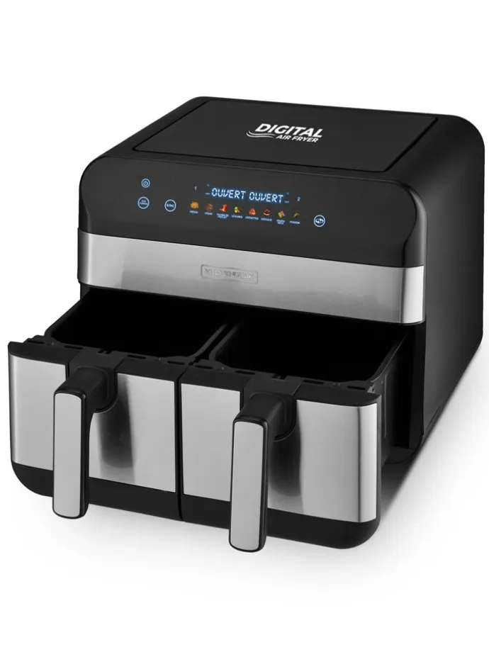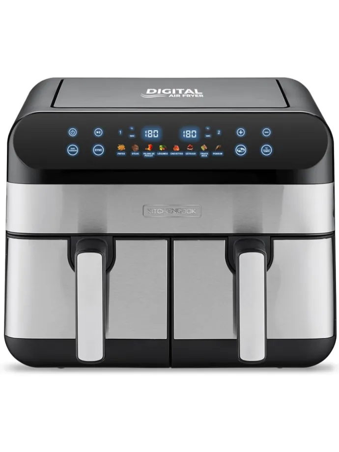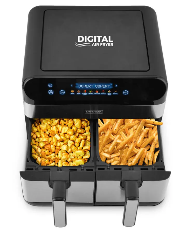 – 8 voreingestellte Programme: Pommes/Steak/Hähnchenkeulen/Gemüse/Garnelen/Kuchen/Trockenfrüchte/Fisch
