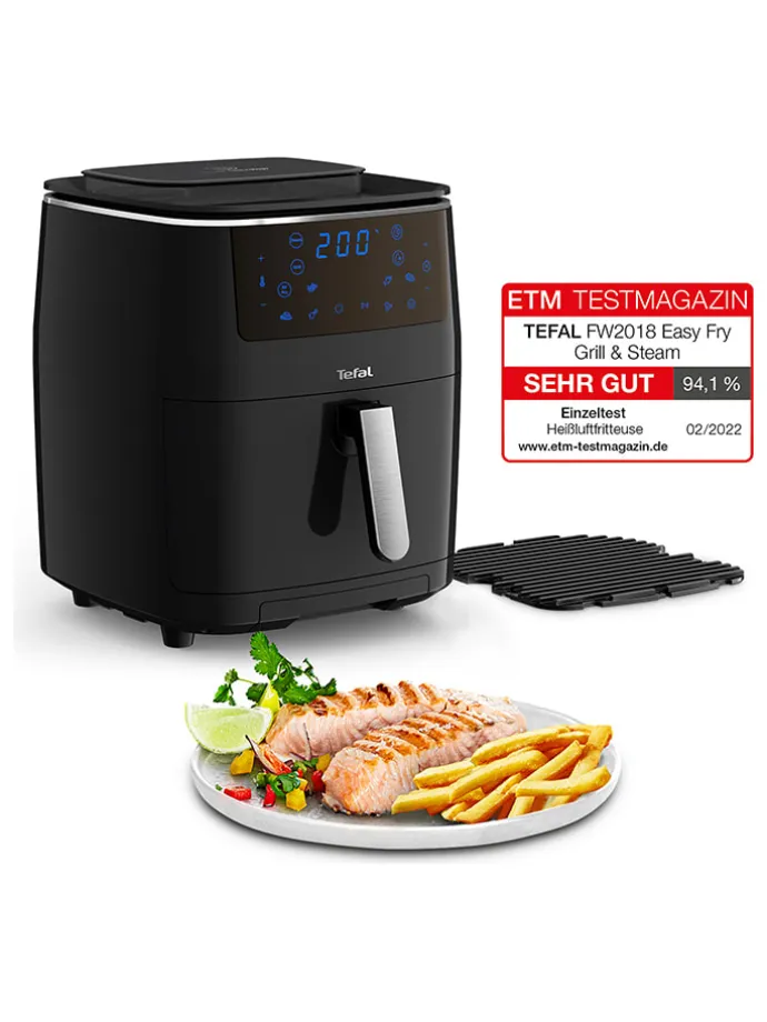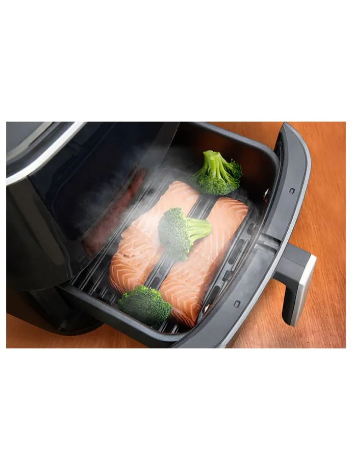 – drei Technologien in einer einzigen platzsparenden Lösung: Heißluftfritteuse, Grill
