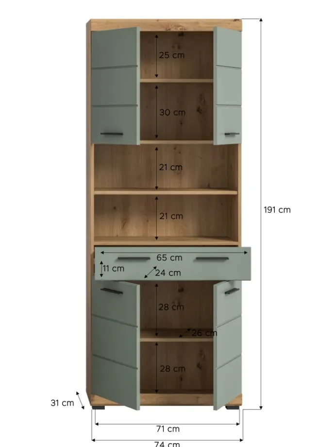 Hochschrank in Artisan Eiche/Salbei – (B) 74 x (H) 191 x (T) 31