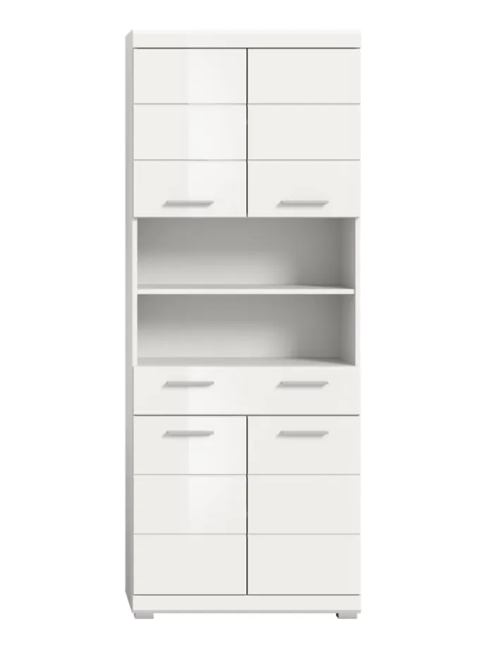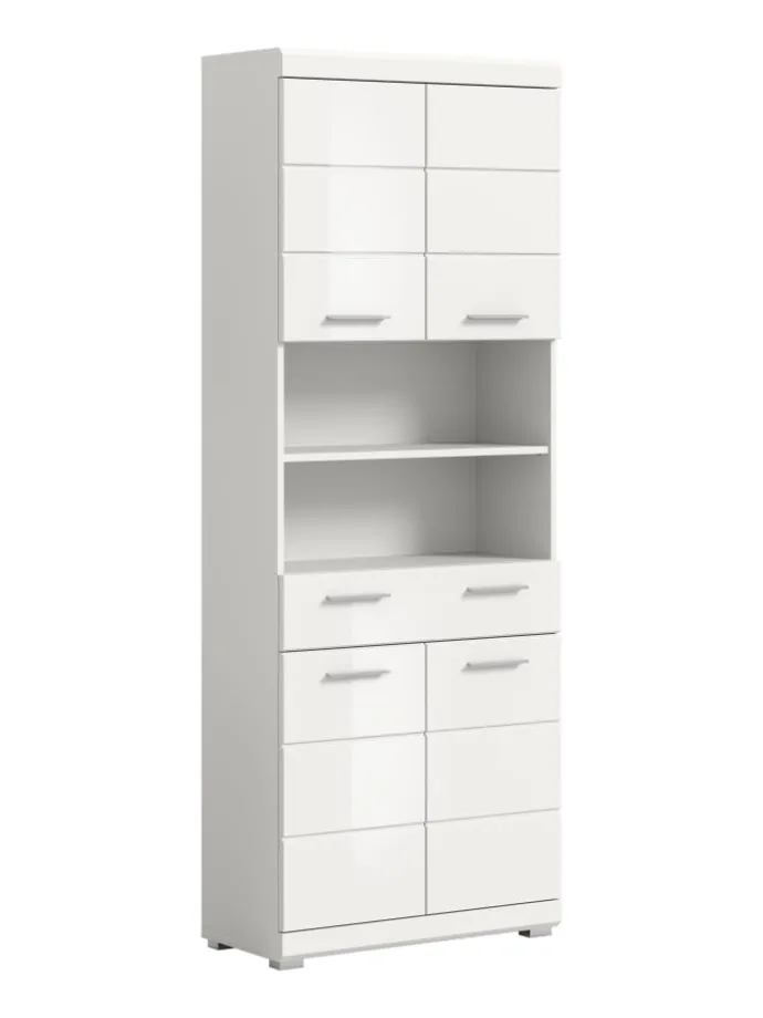 Hochschrank in weiß/weiß hochglanz – (B) 74 x (H) 191 x (T) 31