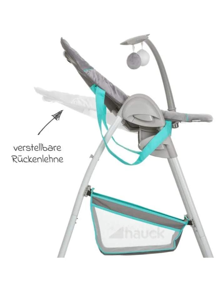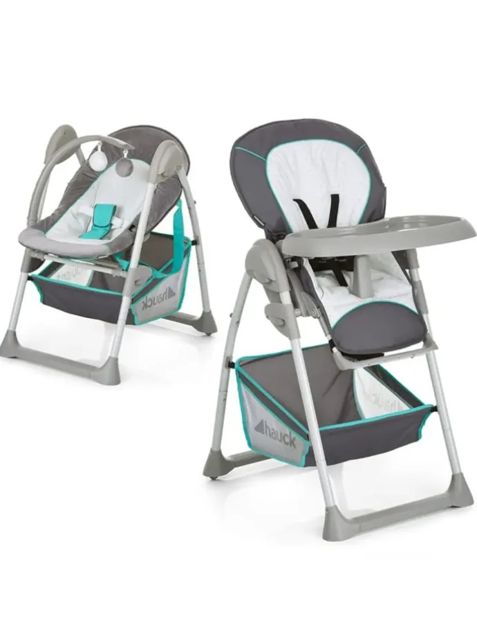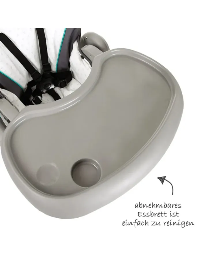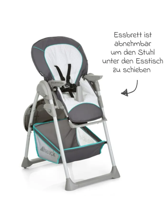 Babyaufsatz für Neugeborene In den ersten Monaten liegt Ihr Baby rückenschonend in dem praktischen Babyaufsatz und wird durch den gepolsterten 3-Punkt-Gurt sicher im Sitz gehalten. Die Höhe der Babyliege lässt sich beliebig anpassen und auch die Rückenlehne ist dreifach verstellbar. Der Spielbogen mit den beiden Kugeln weckt die Neugierde Ihres Kindes und trainiert seine motorischen Fähigkeiten. Er kann zur Seite geschwenkt oder komplett abgenommen werden. Höhenverstellbar und Top Ausstattung Das Gestell kann in der Höhe siebenfach verstellt und perfekt an jeden Tisch angepasst werden. So haben Sie Ihren kleinen Schatz immer im Blick. Durch die Rollen lässt sich der Hochstuhl bzw. die Babyliege bequem von Zimmer zu Zimmer bewegen. Wird der Hauck Sit’n Relax Zoo nicht gebraucht, lässt er sich platzsparend zusammenklappen. Das Lieblingsspielzeug oder andere Utensilien verstauen Sie bequem im großen Ablagekorb. Hochstuhlaufsatz ab ca. 9 Monate Sobald Ihr Kind ohne fremde Hilfe aufrecht sitzen kann, können Sie den Hochstuhlaufsatz des Sit’n Relax Zoo nutzen. Der breite, ergonomisch-geformte Sitz ist besonders bequem. Die Rückenlehne lässt sich mit einer Hand bis in die Ruheposition bringen und auch die Fußstütze kann individuell an die Größe Ihres Kindes angepasst werden. Der 5-Punkt-Gurt und ein zusätzlich angebrachter Mittelsteg geben sicheren Halt, wenn Ihr Liebling in seinem Stuhl sitzt und mit Ihnen gemeinsam seine Mahlzeiten einnimmt. Für optimale Sitzfreiheit können Sie das Ess- und Spielbrett in der Tiefe verstellen. Die nützliche Bechervertiefung gibt Getränken sicheren Halt und der hohe Rand sorgt dafür; dass nichts hinunterfällt. Geht beim Essen dennoch mal etwas daneben, kann das praktische Brettchen leicht abgenommen und gereinigt werden. Geprüfte Qualität und Sicherheit Der Hochstuhl Sit’n Relax Zoo von Hauck ist mit dem GS-Siegel des TüV Austria ausgezeichnet. Für einen stabilen Stand sorgt das leichte Gestell aus Aluminium. Sollte sich Ihr Kind mit den Beinen vom Tisch wegschieben, verhindern die hinteren Rollen ein Kippen des Hochstuhls. Die gepolsterten Gurte sichern Ihren Nachwuchs zuverlässig in der Babyliege und Hochstuhl.Hier finden Sie einen Testbericht zum Hauck Sit’n Relax. Lieferumfang