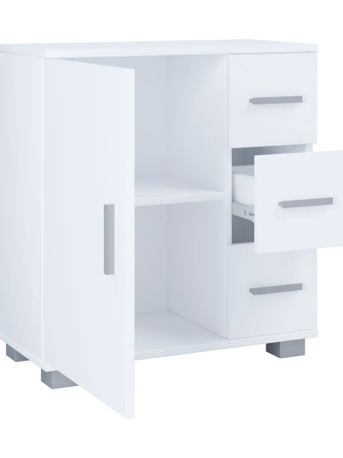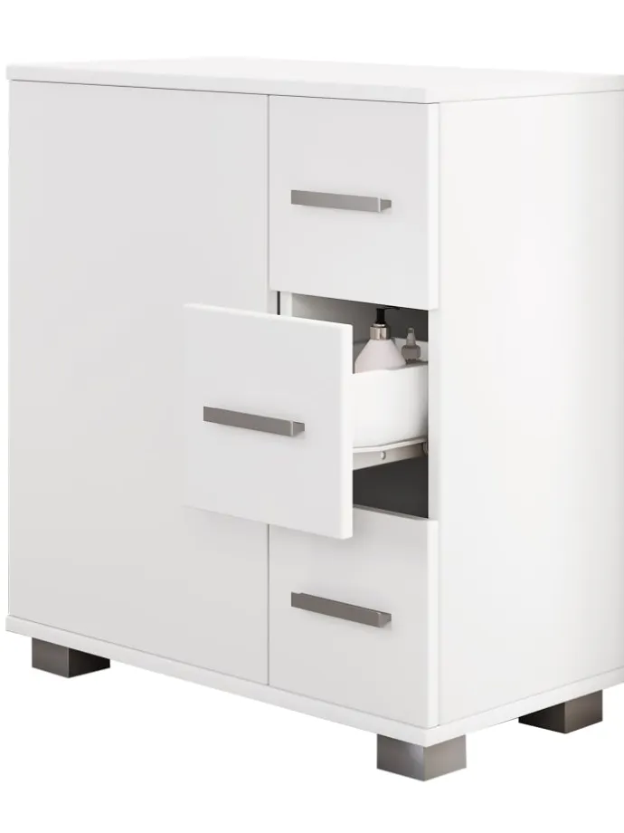 – Badmöbel mit einer Drehtür und drei Schubladen für Staumraum