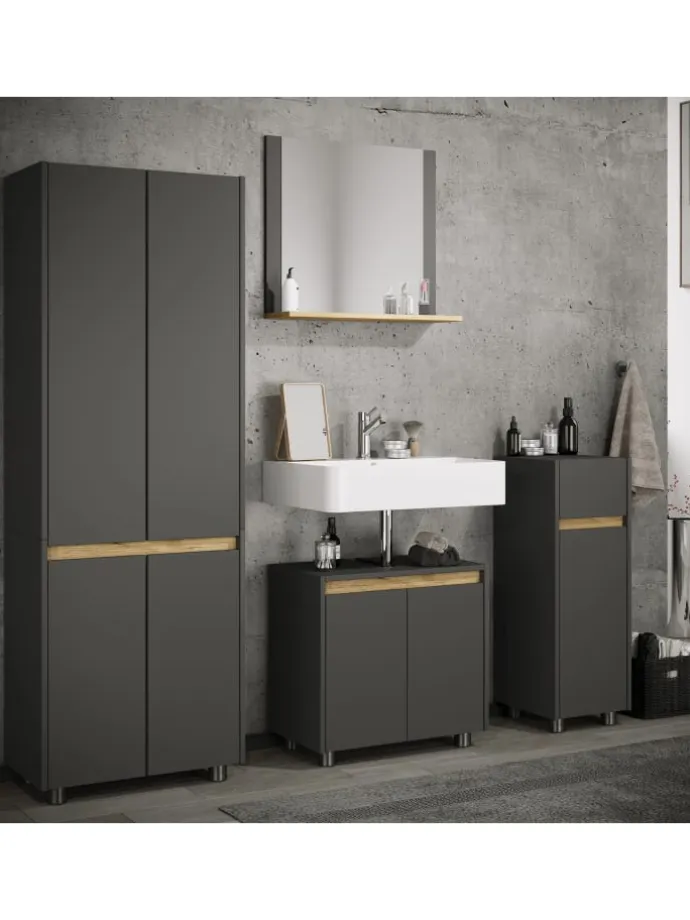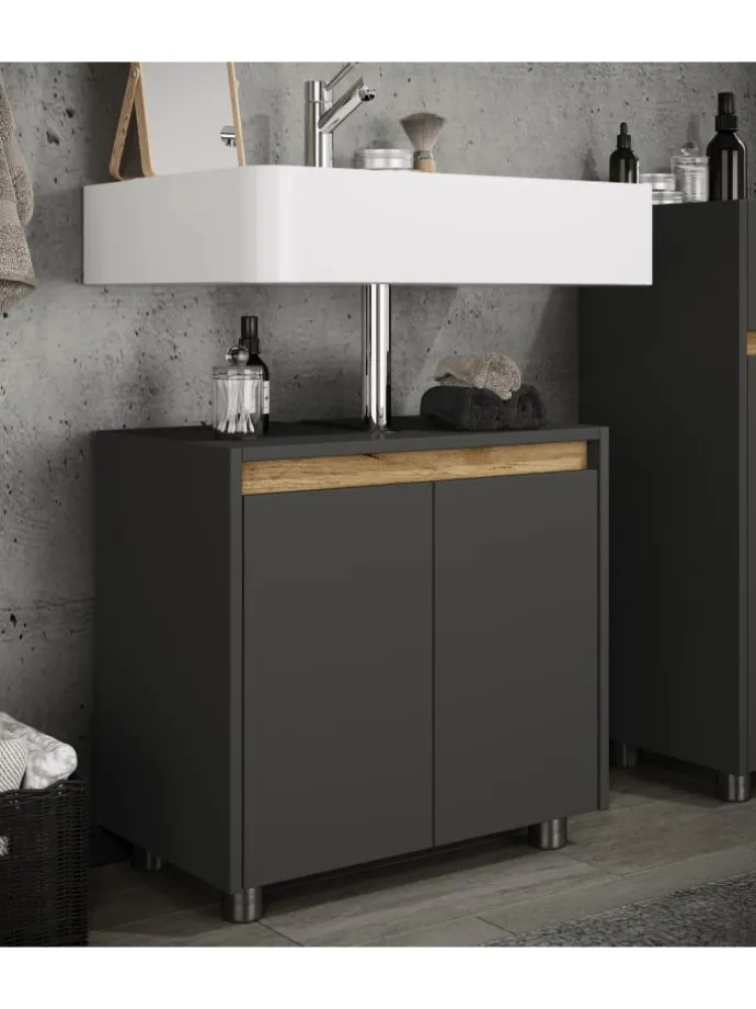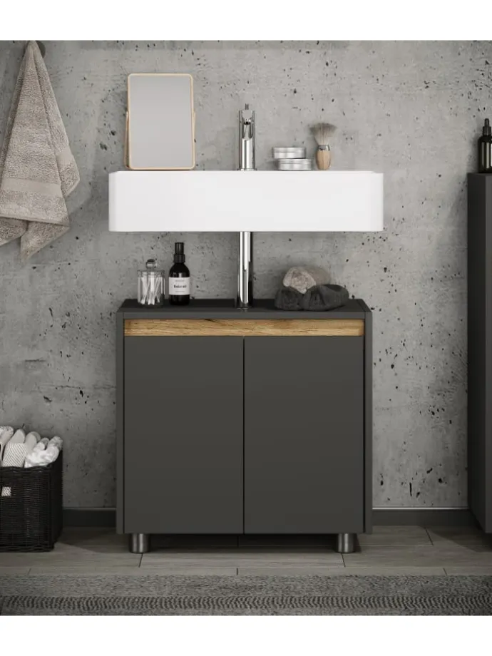 Der „Cosila“ Waschbeckenunterschrank lässt sich perfekt in jedes Badezimmer integrieren und bietet sowohl praktischen Stauraum als auch eine ansprechende Optik. Setzen Sie auf Qualität und modernes Design – mit diesem Badschrank schaffen Sie eine angenehme Atmosphäre und profitieren von zusätzlichem Stauraum!