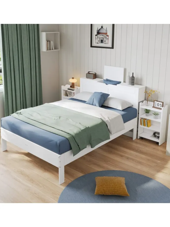 Das Design des verschiebbaren Nachttisches bietet Stauraum und Komfort.