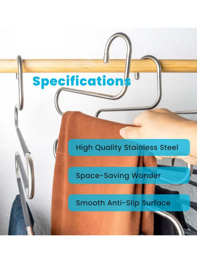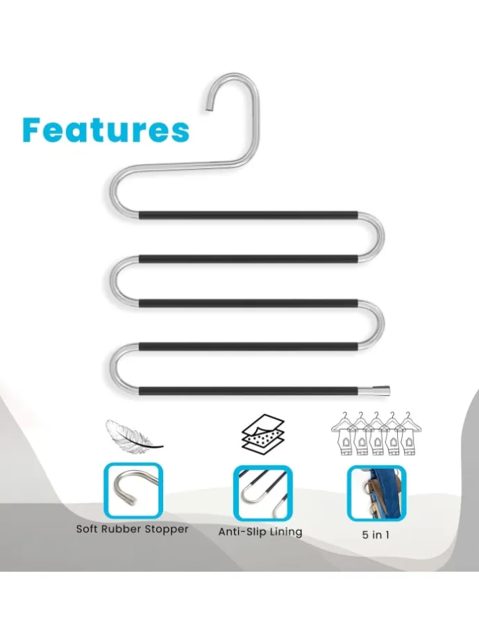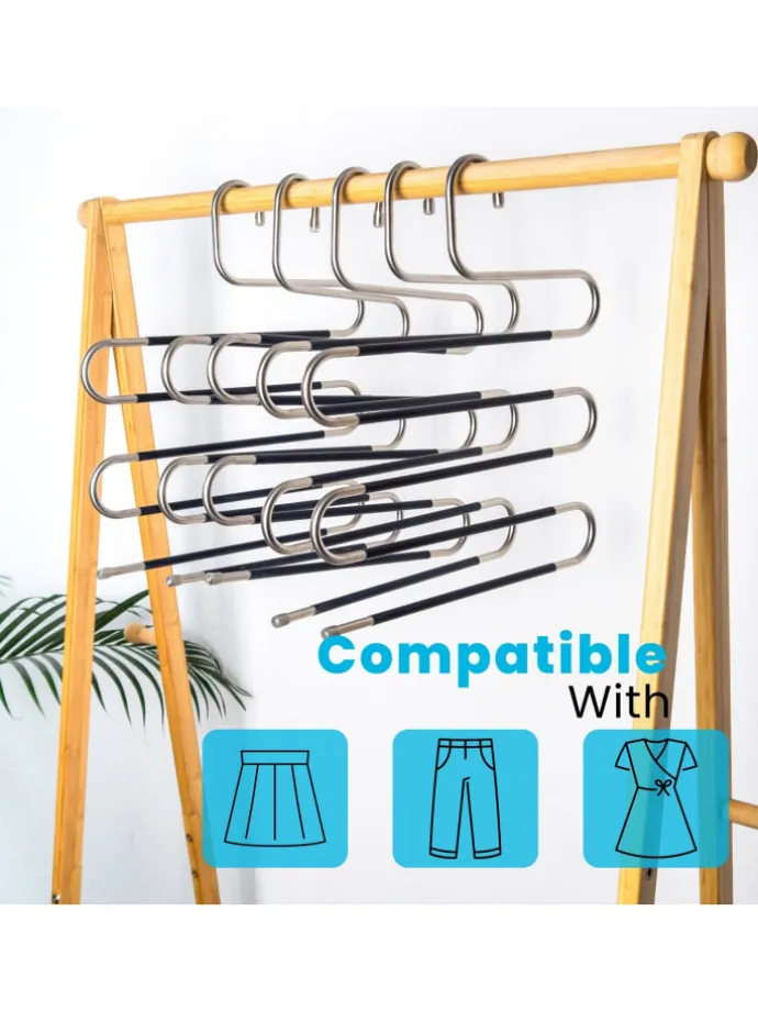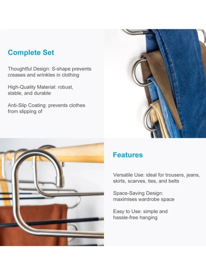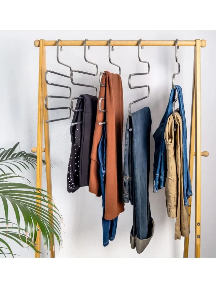 Platzsparender Hosenbügel mit 5 Ebenen: Hält bis zu 5 Jeans oder Kleidungsstücke pro Bügel, spart Platz im Kleiderschrank und sorgt für Ordnung – ideal für kleine Räume und kompakte Aufbewahrung.