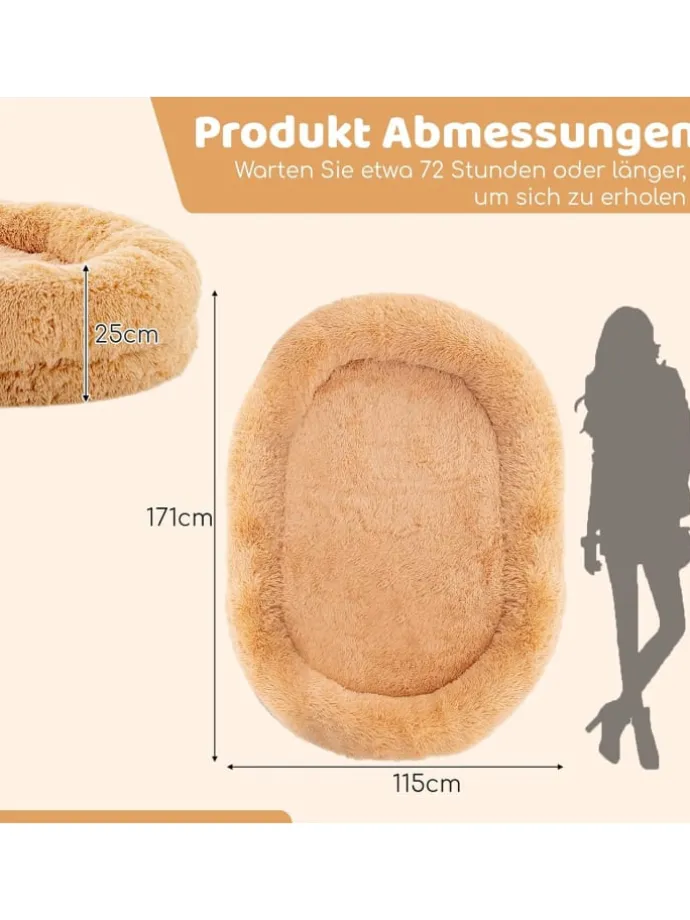 Unser großes Hunde- und Menschenbett bietet damit eine geräumige Fläche, auf der sowohl Sie als auch Ihr geliebter Vierbeiner Platz finden. Ob für ein Nickerchen, zum Spielen, für gemeinsame Unternehmungen oder sogar zum Entspannen im Freien – dieses Bett bietet den perfekten Ort für all Ihre gemeinsamen Aktivitäten. Es verfügt über einen fortschrittlichen, wabenförmigen orthopädischen Schaumstoff, der sich an den Körper Ihres Hundes anpasst, um Druckstellen zu entlasten und einen erholsamen Schlaf zu fördern. Und mit dem abnehmbaren und maschinenwaschbaren Bettbezug können Sie ganz einfach eine saubere und hygienische Umgebung für Ihre pelzigen Freunde aufrechterhalten.