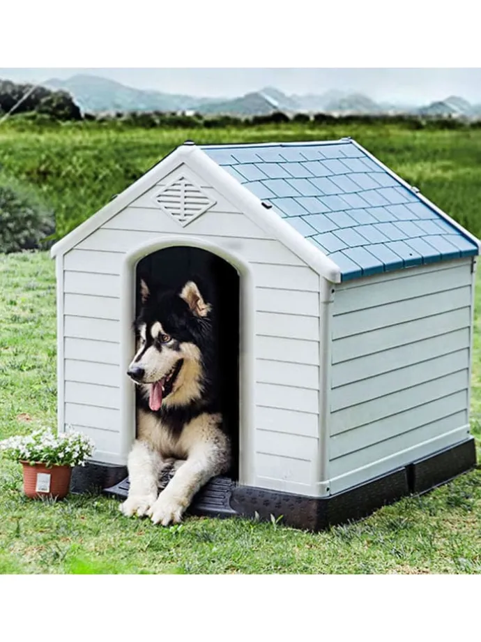 Diese Hundehütte aus Plastik ist das perfekte Möbelstück für Tiere und erlaubt es Ihrem Hund, zu spielen, sich zu entspannen, sich zu sonnen, zu schlafen und die Aktivitäten im Freien komplett zu genießen.