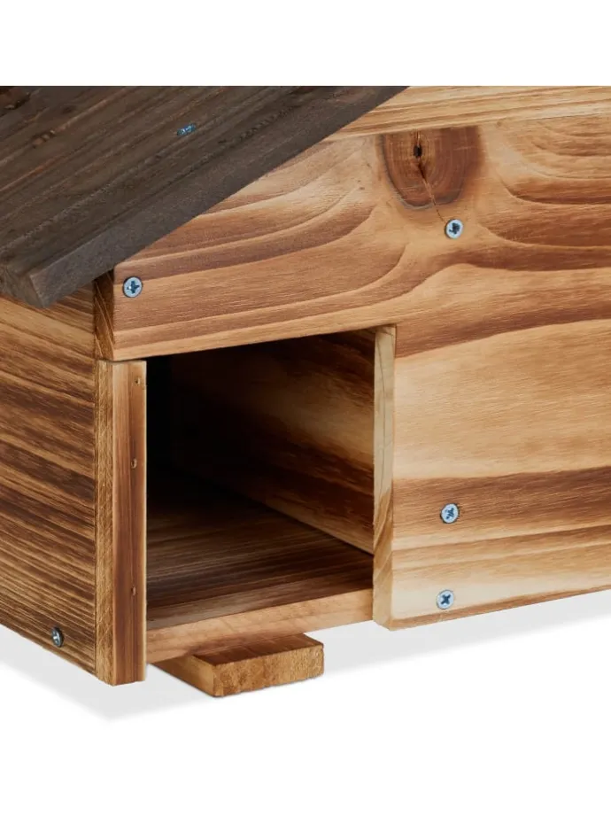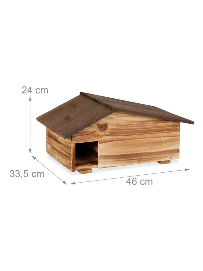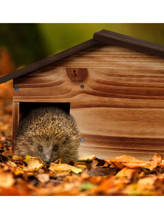 Mit dem Igelhäuschen gibst Du den scheuen Stacheltieren ein Zuhause für den Winter. Die Igelkuppel aus natürlichem Kiefernholz bietet einen idealen Schutz für den Winterschläfer und ist somit perfekt, um einen Igel in Deinem Garten zu empfangen. Die Igelhöhle hat 2 Kammern und ein Schrägdach. Platziere die Igelhütte zu Herbstbeginn an einer geschützten Stelle und bedecke sie mit Blättern und Reisig. Damit der Igel sich wohlfühlt, kannst Du den Igelbau mit Laub als Nistmaterial füllen.