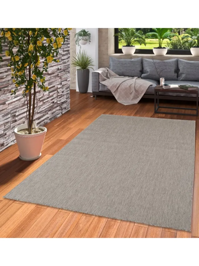„Allrounder“ können Sie hier wörtlich nehmen! Dieser Teppich fügt sich nicht nur stilvoll in jeden Wohnbereich ein, sondern ist außerdem In- und Outdoor einsetzbar und setzt stilvolle Akzente in Natur Optik. Seine rustikale Sisaloptik passt „drinnen wie draußen“ und die erstklassige Kunstfaser hebt die Empfindlichkeit des Sisals auf und macht den Teppich robust und pflegeleicht. Das Material ist besonders strapazierfähig und hält sowohl Feuchtigkeit oder UV-Strahlung problemlos stand. Verschiedene Farben und Designs machen ihn an jedem Ort zu einem Hingucker! Das hochwertige Garn aus 100% Polypropylen ist schadstoffgeprüft. Die Herstellung der Valencia Teppiche findet in einem nach BSCI (Business Social Compliance Initiative) zertifiziertem Betrieb statt.