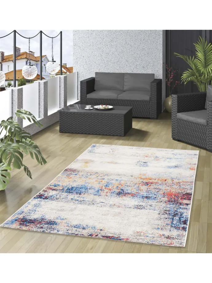 Bringen Sie modernen Flair in Ihr Zuhause oder auf Ihren Außenbereich mit unserem vielseitigen Malibu Designteppich. Das auffällige Muster und die lebendigen Farbakzente machen ihn zu einem echten Blickfang, ob auf der Terrasse, dem Balkon, im Wohnzimmer, Wintergarten, Flur oder Esszimmer. Der Teppich kombiniert stilvolles Design mit praktischen Eigenschaften: Er ist pflegeleicht, wetterfest und UV-beständig, was ihn ideal für den Einsatz im Freien macht. Auch im Innenbereich bleibt er lange schön, selbst in stark frequentierten Zonen wie dem Flur oder Esszimmer. Mit seiner flachen Struktur und robusten Materialien ist der Teppich besonders langlebig und pflegeleicht. Ein regelmäßiges Absaugen genügt, und kleinere Flecken lassen sich mit einem feuchten Tuch leicht entfernen. Dank der widerstandsfähigen Beschaffenheit ist er auch perfekt für Haushalte mit Kindern oder Haustieren geeignet. Setzen Sie kreative Akzente in Ihrer Wohnung oder Ihrem Garten und holen Sie sich diesen funktionalen und zugleich eleganten Malibu Designteppich für Ihr Zuhause!