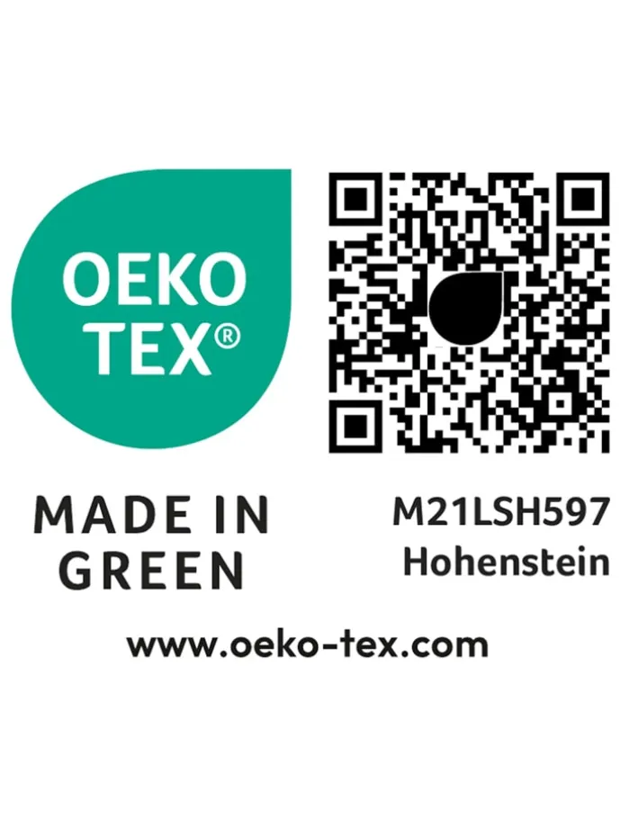 Das Made in Green by OEKO-TEX® -Siegel steht für schadstoffgeprüfte Materialien, umweltfreundliche Betriebe sowie sichere und sozialverträgliche Arbeitsbedingungen.