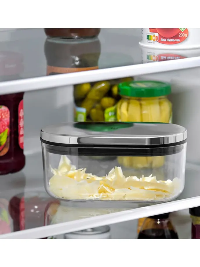 – inklusive Auffangbehälter und Deckel für die Aufbewahrung im Kühlschrank