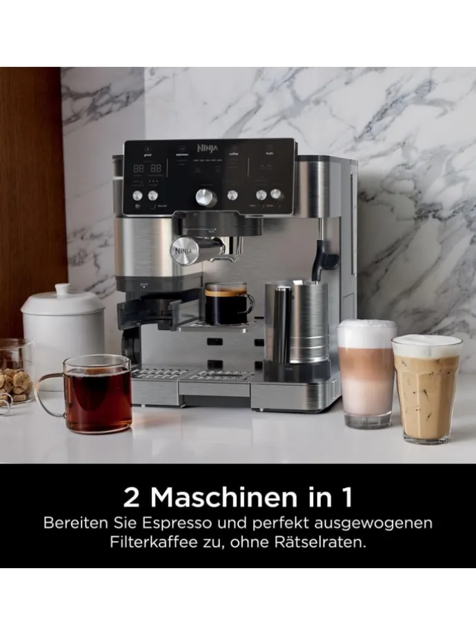 Die Ninja Luxe Café Essential ES501EU ist eine vielseitige Kaffeemaschine, die die Funktionen einer Espressomaschine und einer Filterkaffeemaschine in einem Gerät vereint.