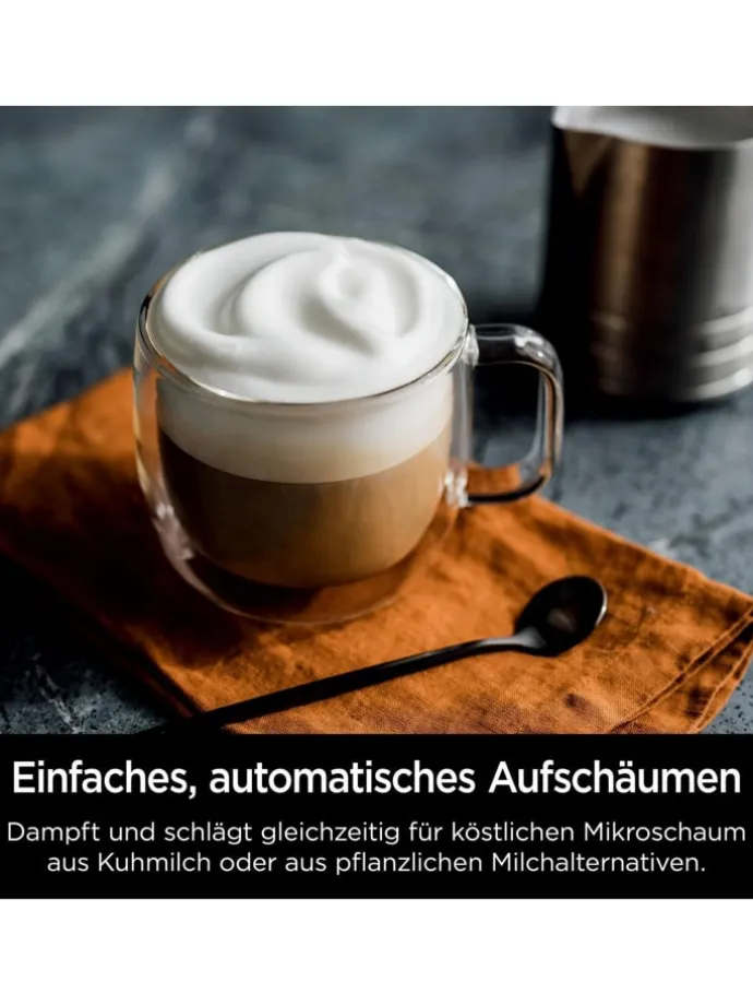 Kreieren Sie mit dem Dual Froth System sowohl den perfekten Milchschaum für Ihren Espresso als auch luftigen Schaum für Ihren Filterkaffee, ohne dass zusätzliche Geräte oder manueller Aufwand erforderlich sind. Sie können sowohl Kuhmilch, als auch pflanzliche Milchalternativen verwenden.