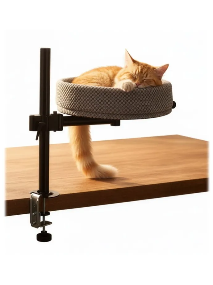 – Raumsparender Katzenschlafplatz durch Montage am Schreibtisch