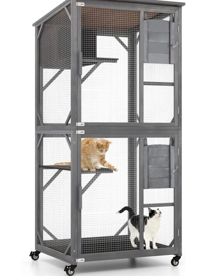 Ausgestattet mit 4 Rädern für einfache Mobilität, lässt sich das Katzenhaus mühelos bewegen
