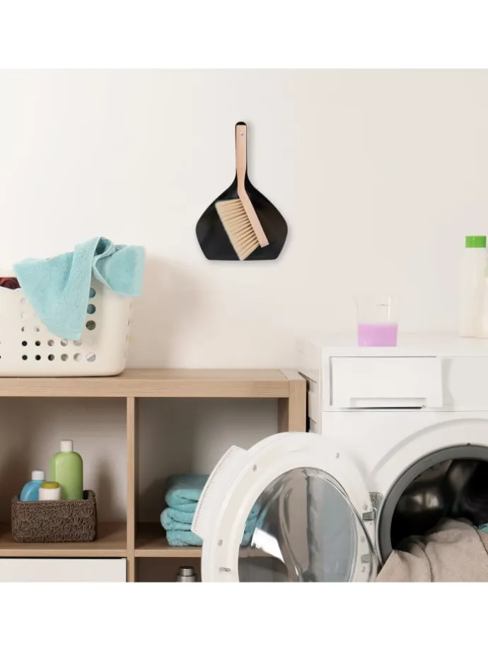 Diese praktische Kehrgarnitur ist ein unverzichtbarer Reinigungshelfer in Deinem Haushalt. Nutze den Handbesen mit weichen Borsten und das Metall-Kehrblech, um schnell und einfach Dreck, Krümel, Staub und mehr vom Fußboden zu entfernen. Der hohe Rand der Kehrschaufel verhindert dabei ein Verschütten des Schmutzes. Zudem kannst Du dank des Lochs im Griff das Kehrset praktisch an der Wand aufhängen und hast Besen und Schaufel so immer zur Hand.