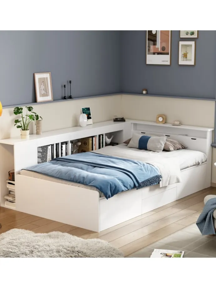 Dieses Kinderbett bietet eine Vielzahl von Funktionen, mit 4 Schubladen an der Seite des Bettes, übergroßem Stauraum, einschließlich seitlicher Bücherregale und Aufbewahrungsschränke, in denen Bücher, Spielzeug usw.
