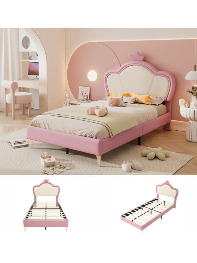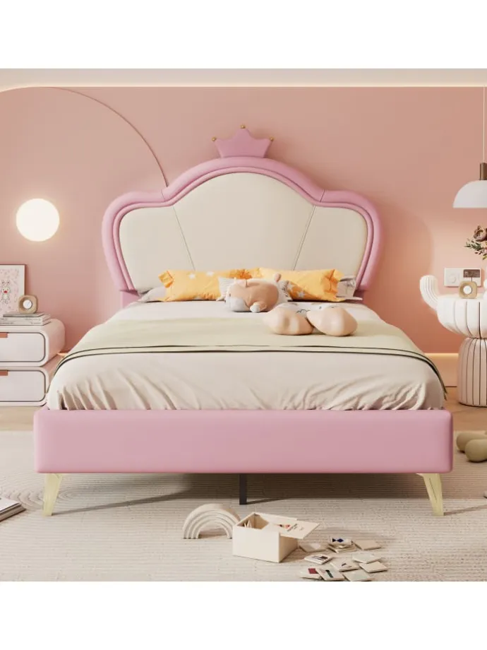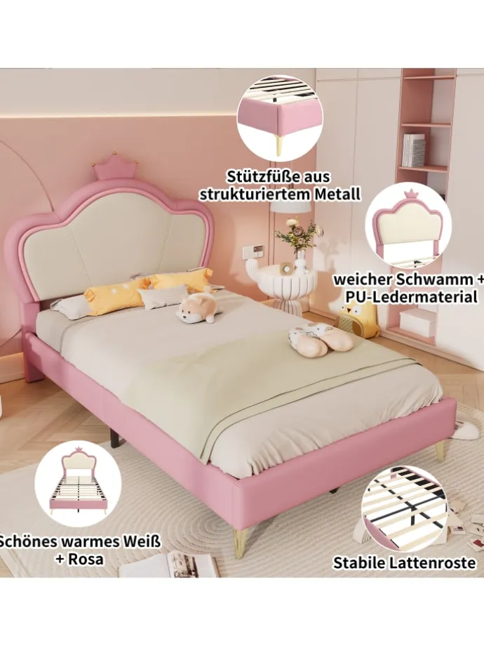 Verspieltes Design: Kopfteil mit dekorativer Krone und wellenförmiger Polsterung für märchenhafte Optik