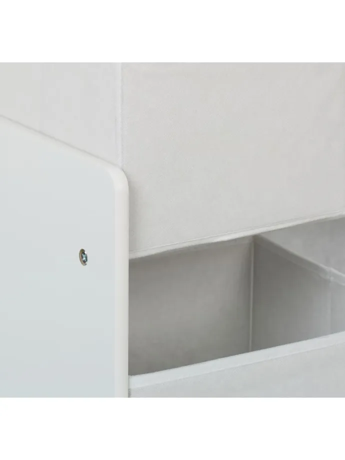 Die Kinderkommode eignet sich ideal zur Spielzeugaufbewahrung. Mit den 9 Aufbewahrungsboxen steht ausreichend Platz zur Verfügung, um Kuscheltiere, Bücher und Spielsachen ordentlich zu verstauen. Dank der kindgerechten Höhe können bereits Kleinkinder das stabile Spielsachenregal selbstständig aus- und einräumen. Das Spielzeugregal in dezentem Weiß fügt sich harmonisch in das Kinderzimmer von Mädchen oder Jungen ein.
