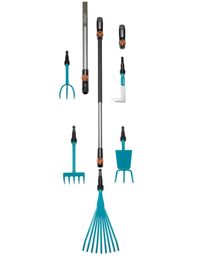 – Combisystem ermöglicht dank der auswechselbaren Aufsätze den flexiblen Einsatz in der Gartenarbeit