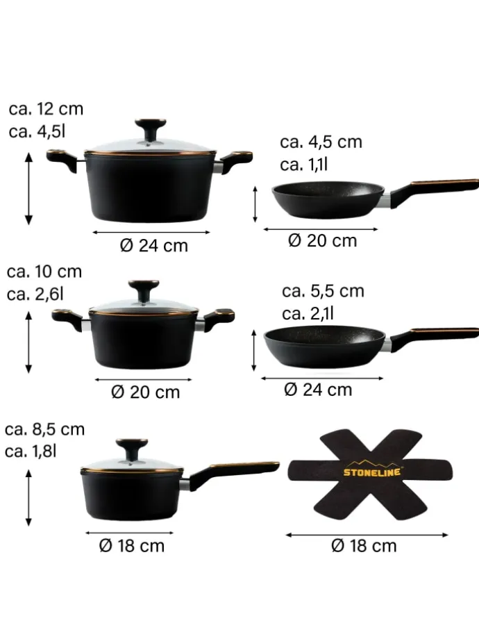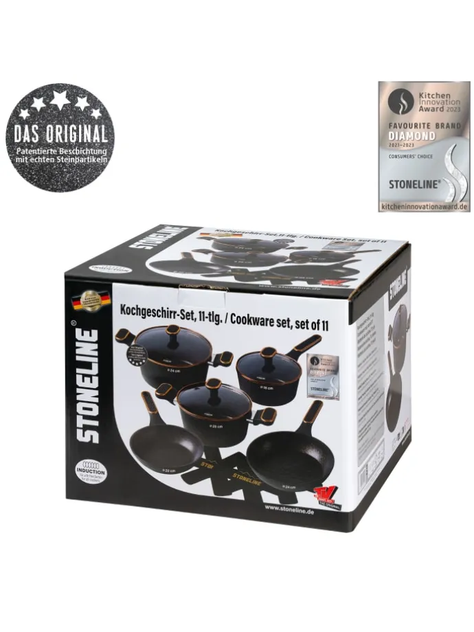 Dank der speziellen STONELINE®-Antihaftbeschichtung, lassen sich Ihre Speisen in der Pfanne und Topf, je nach Wunsch, mit oder ohne Bratfett und Öl zubereiten und ganz ohne Ankleben aus dem Topf und der Pfanne lösen.