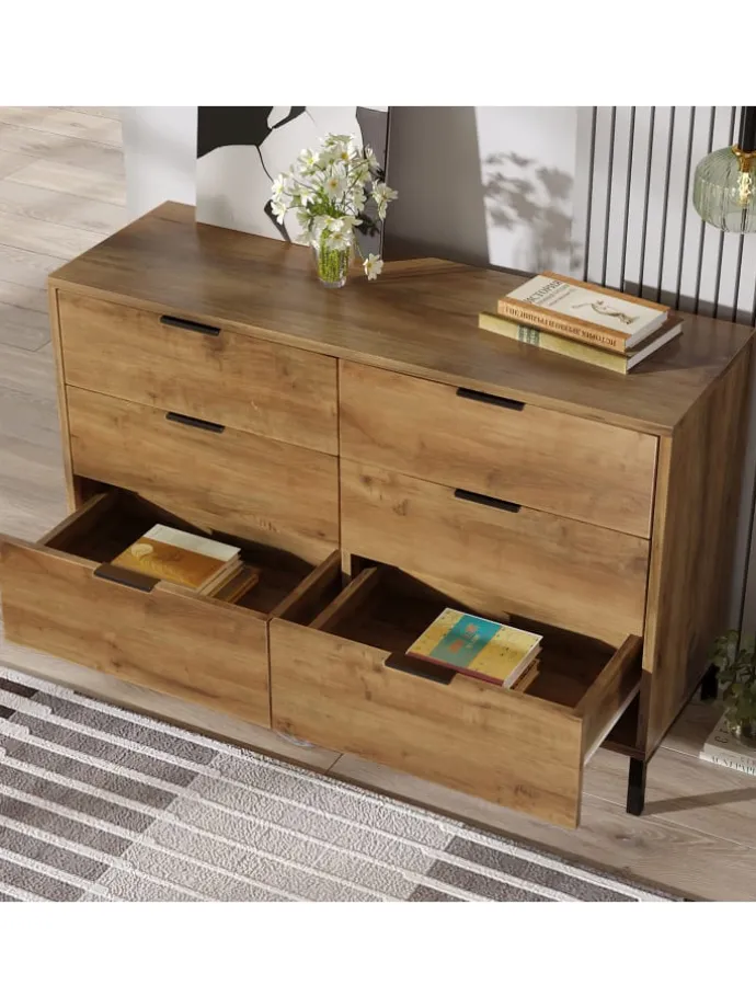 Die Kommode wurde als langlebiges Möbelstück konzipiert, da sie aus hochwertigem Holz gefertigt wurde, mit exzellenter Schiene, alles für eine komfortable Nutzung.