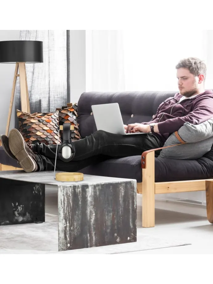 Stellen Sie den Kopfhörer Halter auf Ihren Schreibtisch oder Ihre Anrichte. Er dient nicht nur zur Aufbewahrung von On- und Over-Ear-Kopfhörern sondern ist auch ein schmückendes Element für Ihre Wohnlandschaft. Außerdem verfügt die Headsethalterung über eine zusätzliche Ablageschale für Ihre technischen Utensilien wie Kabel, Adapter oder Ähnliches.