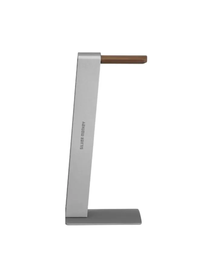 Der elegante Silver Monkey HS400 Kopfhörerständer verleiht jedem Gaming-Schreibtisch Stil. Der aus hochwertigem Aluminium und robustem Walnussholz gefertigte Ständer schützt Ihre Kopfhörer nicht vor Beschädigungen. Der rutschfeste Boden sorgt für Stabilität und eliminiert die Gefahr eines versehentlichen Umkippens. Das abgerundete Profil des Griffs garantiert Bedienkomfort und das moderne Design macht ihn zur idealen Wahl für jeden Spieler, der Wert auf Funktionalität und Ästhetik legt.