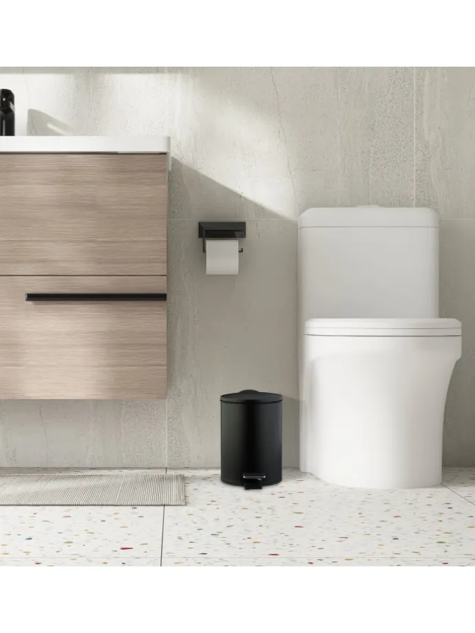 In dem runden Treteimer kannst Du hygienisch und komfortabel Deine Hygieneabfälle im Bad und am Schminktisch entsorgen. Mit dem praktischen Trittpedal lässt sich der Badezimmereimer freihändig öffnen, das Schließen des Deckels gelingt dank Softclose-Funktion besonders sanft und leise. Der entnehmbare Kunststoffeimer mit praktischem Henkel sorgt für ein leichtes Entleeren des Abfalleimers. Optisch begeistert der moderne Badezimmermülleimer mit seiner matten Oberfläche.