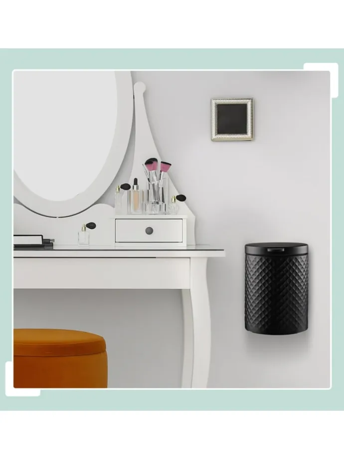 Im Mülleimer zur Wandmontage kannst Du hygienisch und komfortabel Deinen Abfall im Bad und am Schminktisch entsorgen, ohne Dich bücken zu müssen. Bringe den Hängemülleimer dazu einfach in gewünschter Höhe an und öffne ihn bequem über den Griff. Das Schließen des Deckels gelingt dank Absenkautomatik besonders sanft und leise. Der entnehmbare Inneneimer mit Henkel sorgt für ein leichtes Entleeren des Hygienebehälters. Optisch punktet der moderne Kosmetikmülleimer durch seine matte Oberfläche.