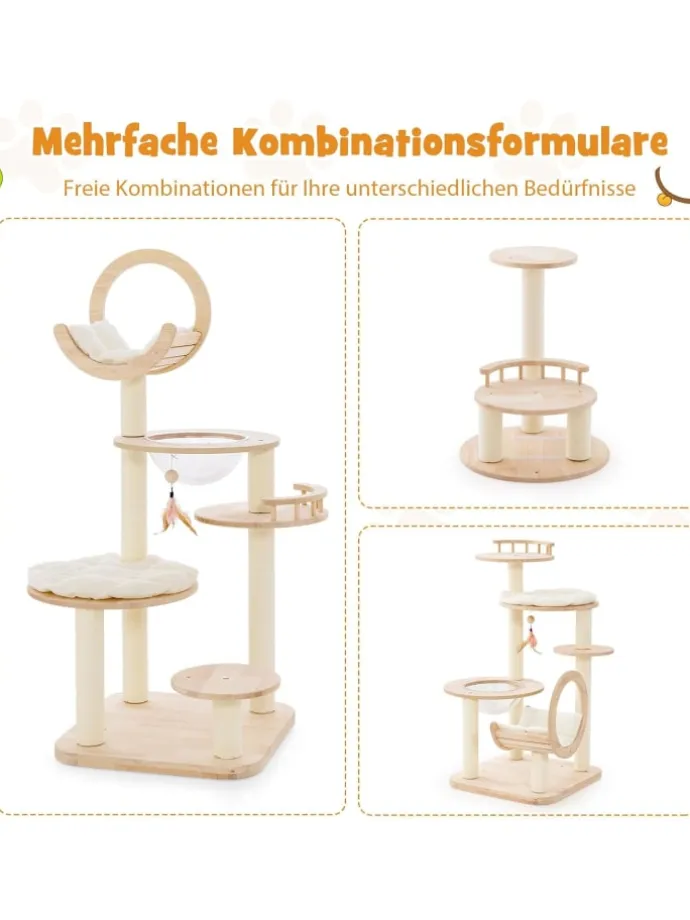 Mit 4 Kombinationsformen können Sie einen Kletterturm erstellen, der perfekt zu Ihrem Platz und den Vorlieben Ihrer Katze passt. Dieser mehrstöckige Kratzbaum bietet Platz für bis zu 3 Katzen gleichzeitig und bietet ihnen reichlich Platz zum Spielen, Ausruhen und Ausstrecken ihrer Pfoten.