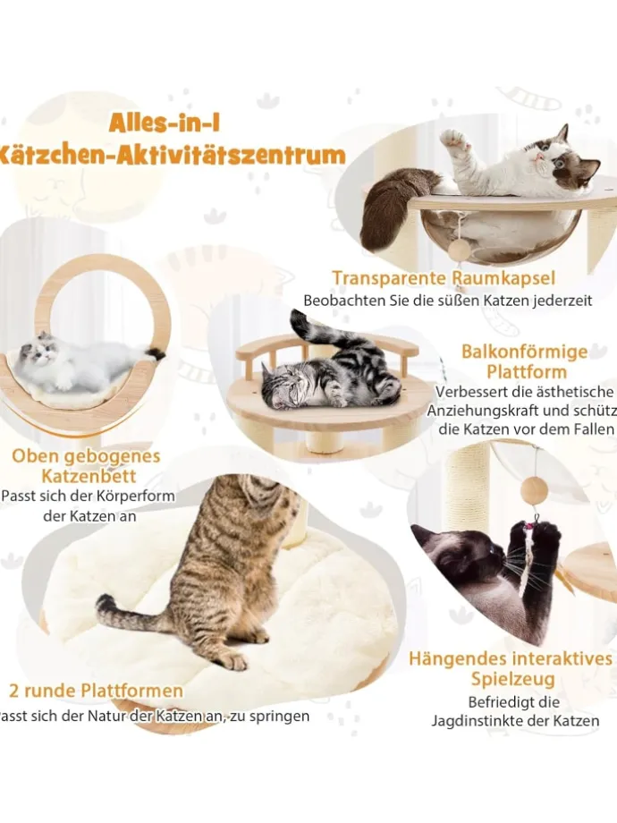 Unser vielseitiger Kratzbaum bietet Ihren Katzen einen lustigen Spielbereich!
