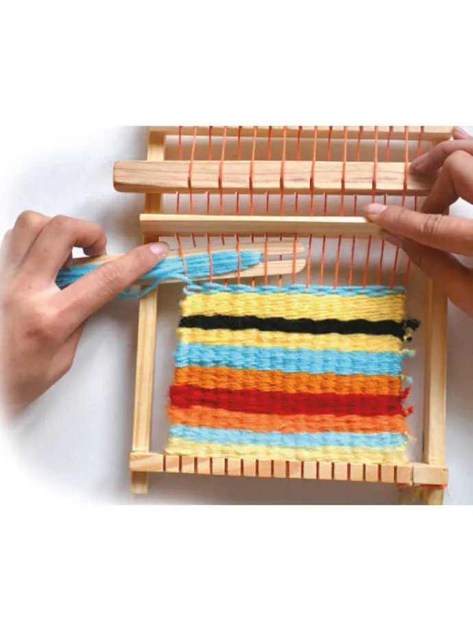 – Inhalt: Webrahmen, Webschiffchen und Garn
