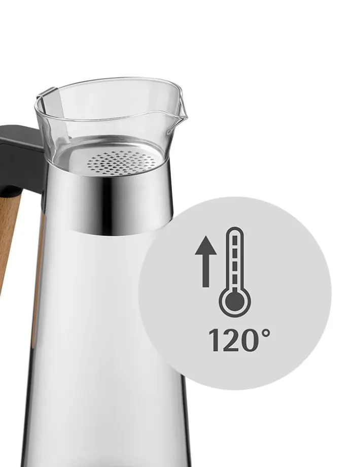 – integriertes, herausnehmbares Sieb aus Edelstahl
