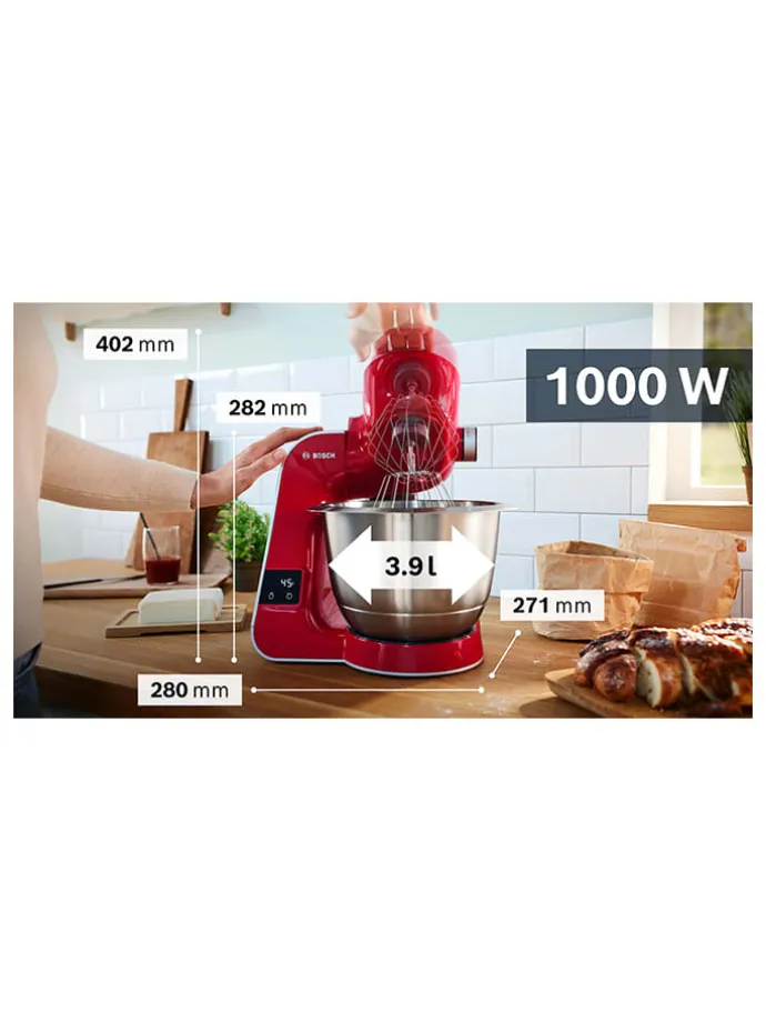 – automatische Parkstellung der Rührwerkzeuge zur einfacheren Befüllung der Schüssel
