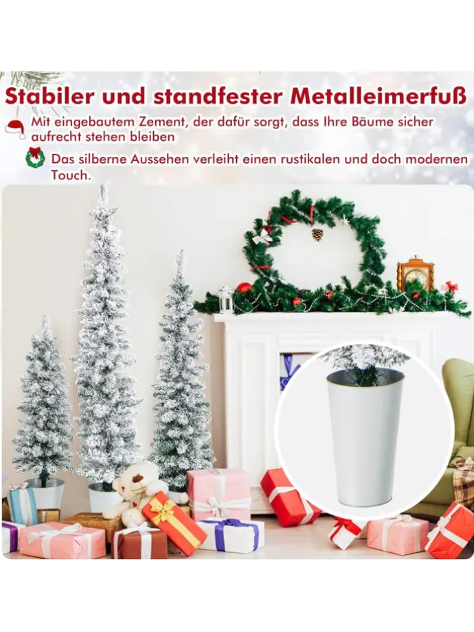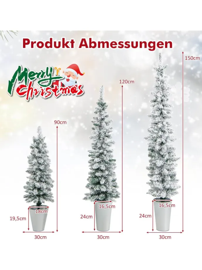 Tauchen Sie ein in die Feenwelt der Feiertage mit dem bezaubernden Weihnachtsbaum-Set aus 3 Stück. Mit verschiedenen Höhen von 90 cm, 120 cm und 150 cm können diese Weihnachtsbäume zusammen oder separat angeordnet werden, um ein faszinierendes Winterwunderland zu schaffen. Mit jeweils 120 + 140 + 160 beflockten Zweigspitzen bieten sie reichlich Platz für Ihre geschätzte Festdekoration und verwandeln Ihren Eingangsbereich, Ihr Zuhause, Ihre Schule oder Ihr Büro in eine Oase der Verzauberung. Hergestellt aus hochwertigen Materialien (neues PVC) spiegeln diese Stiftbäume die Pracht echter Bäume wider und gewährleisten gleichzeitig ultimative Sicherheit gegen Feuer und Verblassen.