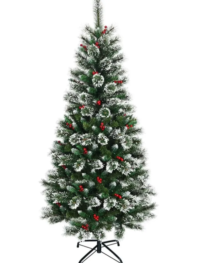 Gibt es etwas Festlicheres als den Weihnachtsbaum? Bringen Sie dieses schneebedeckte künstliche Exemplar mit nach Hause und haben Sie einen Grund zum Jubeln. Er besteht aus 100 % neuem PVC und weist eine höhere Haltbarkeit, lebhaftere Farben und eine stabilere Struktur auf als ein billiger Baum, der recycelte Materialien verwendet. Außerdem zeichnet er sich durch sein auffälliges Design, die schöne Farbkombinationen und dekorative Weihnachtselemente aus. Nadeln mit Schneeflocken, leuchtend rote Beeren und grüne Zweige, all dies sorgt für eine schöne Optik, die die festliche Atmosphäre verstärkt. Der klappbare Baum lässt sich leicht zusammenbauen oder für eineeinfache Lagerung zerlegen. Dank des robusten Eisensockels steht er sehr stabil. Schmücken Sie Ihr Zimmer mit diesem künstlichen und dennoch schönen Weihnachtsbaum für eine Atmosphäre voll von Jubel und Festlichkeit.