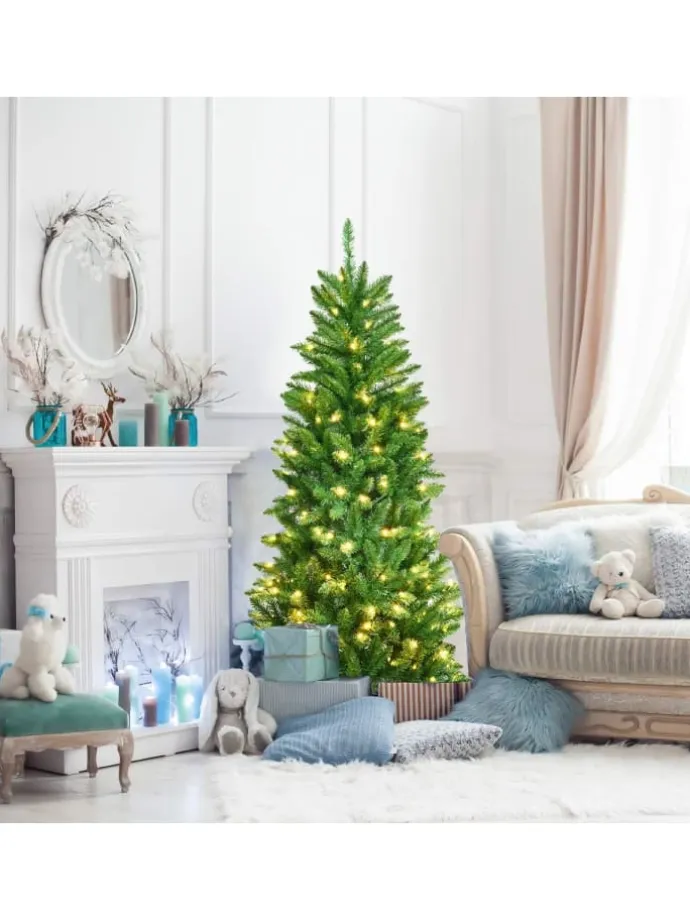 Weihnachten steht vor der Tür. Es ist an der Zeit, Ihr Haus mit einem perfekten Weihnachtsbaum zu schmücken. Mit seinem schlanken Bleistiftdesign wird dieser 150 cm große Baum nicht zu viel Platz einnehmen. Wo auch immer Sie ihn aufstellen, wie z.B. an der Tür, am Kamin, neben der Treppe, im Esszimmer und anderswo, er wird die perfekte Dekoration sein. In der Zwischenzeit werden seine 150 warmweißen LED-Lichter die festliche Atmosphäre erhöhen und Sie in Weihnachtsstimmung versetzen. Sorgfältig aus 100% neuem PVC hergestellt ist er geruchlos, nicht brennbar und hypoallergen, womit er ein sichereres Nutzungserlebnis bietet. Außerdem müssen Sie sich durch die klappbaren Abschnitte keine Sorgen machen, wie Sie diesen Baum aufbauen sollen. Das dauert nur wenige Minuten. Dank des robusten Metallständers steht der Weihnachtsbaum die ganze Saison über aufrecht. Bringen Sie ihn in Ihr Haus, erfüllen Sie es mit festlichem Jubel und genießen Sie ein fröhliches Fest.