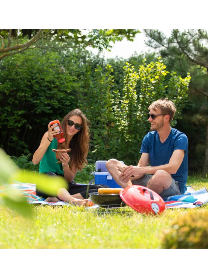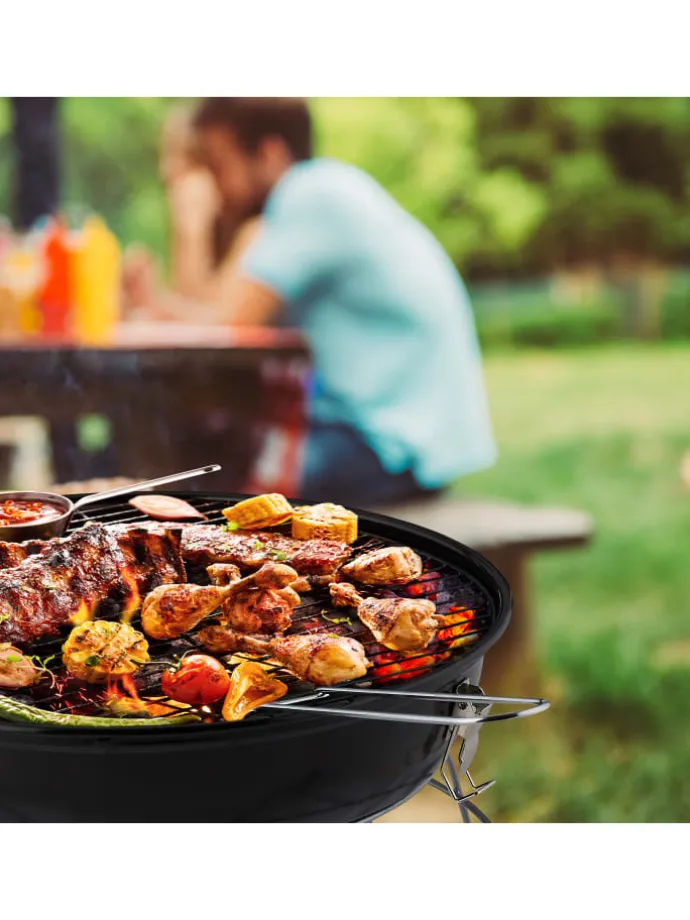 Für das nächste sommerliche Picknick sind Sie mit dem Kugelgrill bestens ausgerüstet: Das kompakte, transportable Design bietet dennoch eine genügend große Grillfläche, um leckere Speisen für bis zu 4 Personen zuzubereiten. Am Griff des fixierbaren Deckels können Sie den leichten Rundgrill bequem mit in den Park auf die Wiese nehmen. Die Kohlewanne und der Grillrost bestehen aus Emaille-beschichtetem Stahl und können für die Reinigung separat entnommen werden.