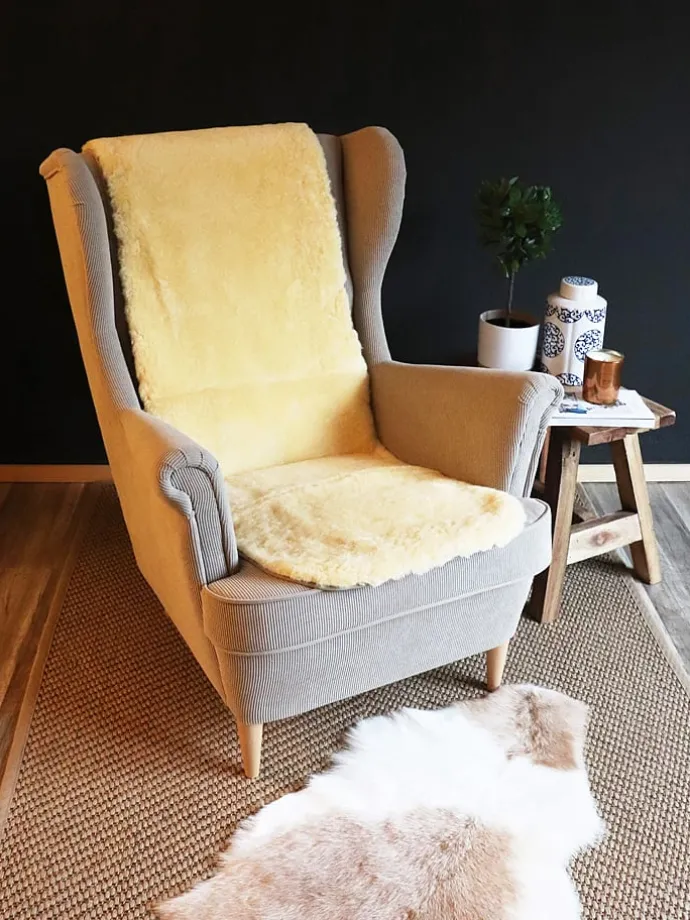 – Pflegehinweise: Da Felle bei jeder Reinigung stark beansprucht werden, genügt es auch, das Fell an frischer Luft auszulüften. Durch regelmäßiges Ausbürsten mit einer Fellbürste in Haarwuchsrichtung bleibt die Optik des Fells erhalten.