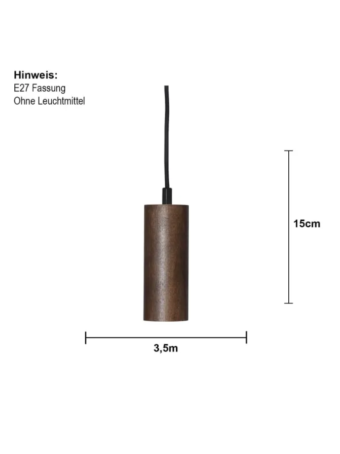 Lampenaufhängung ,Tub‘ aus Holz, E27 Fassung, 3,5m Kabellänge, mit Stecker