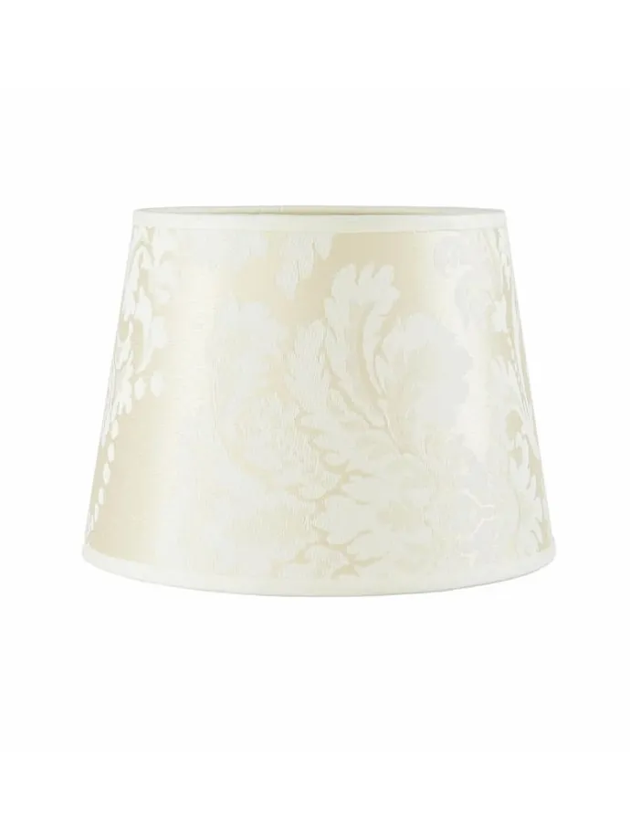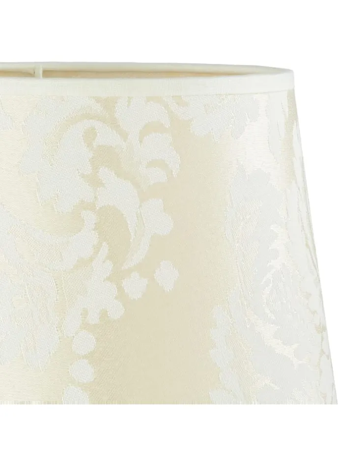 Fassung: 1x E14 bis 40W | Farbe: Ecru | Material: mit Stoff beklebter Kunststoff | Spannung: 230V | Eleganter kleiner Lampenschirm in Ecru Weiß für Tischleuchten und Nachttischlampen mit E14 Fassung | Mit tollem Barock-Muster und glänzender Oberfläche | durch die leicht glänzende Oberfläche wirkt der Schirm je nach Licht heller oder dunkler | Oben: Ø15cm; unten: Ø19,5cm; Höhe: 14cm | Variieren Sie bequem den Look ihrer Lampe – ohne diese komplett zu ersetzen | In konischer Form | Passend für einen Lampenfuß mit nach oben zeigendem Leuchtmittel | Made in EU | Beachten Sie: durch die leicht glänzende Oberfläche wirkt der Schirm je nach Helligkeit heller oder dunkler | Lampengestelle sind nicht enthalten