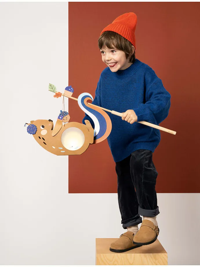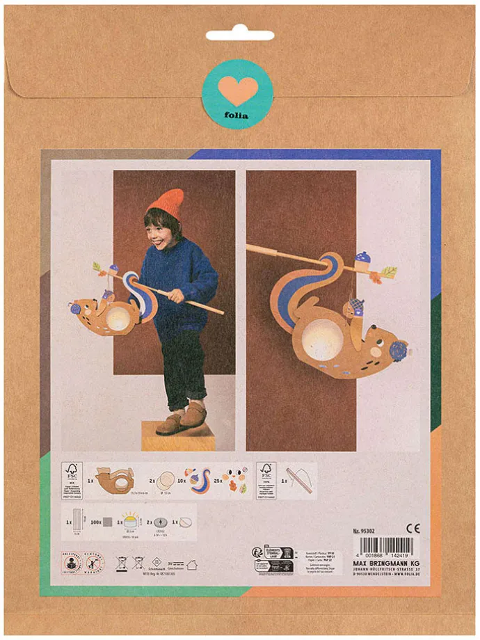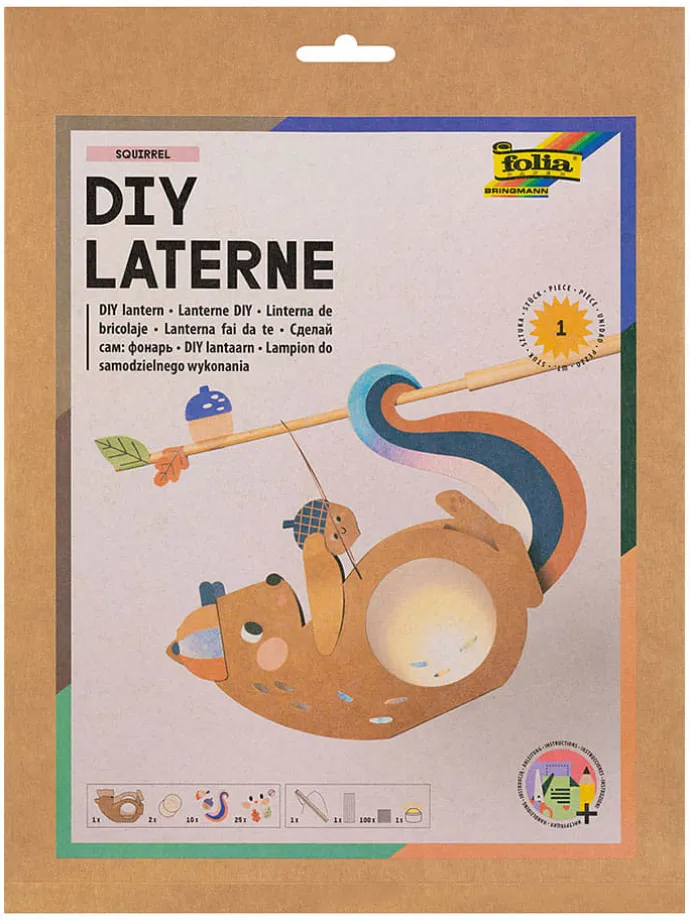– Inhalt: 1 vorgestanzter Rohling in Eichhörnchen-Form, 2 Transparentpapier, 1 Stanzbogen mit Hotfoil, 1 Stickerbogen mit Hotfoil, 1 Laternenstab mit Steckverbindung, 1 Laternendrahtbügel, LED-Dekolicht, 1 Blatt mit Klebestreifen, 100 3D-Klebepads