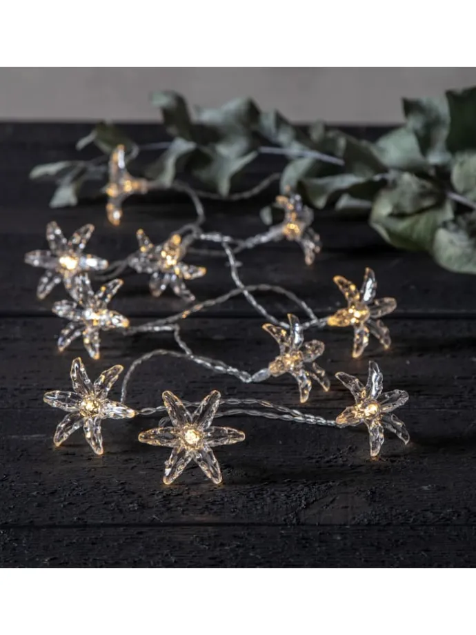 LED Lichterkette Blumen – 10 warmweiße LED – L: 1,35m – Timer – Batteriebetrieb – für Innen Diese LED Lichterkette mit den 10 warmweißen LED Blumen ist die perfekte Dekoration von Türkränzen, Gestecken, Tischen, Kommoden oder Fenstern. Das warmweiße Licht strahlt besonders schön durch die transparenten Blumen.
