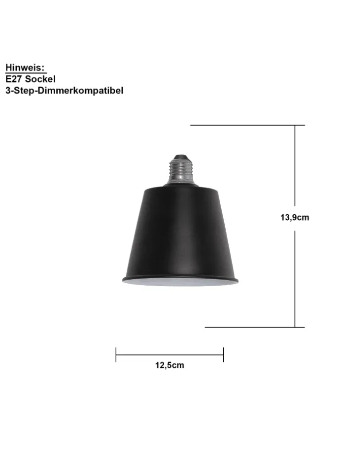 LED-Leuchtmittel in Form eines schwarzen Lampenschirms mit 3-stufiger Klick-Dimmung für verschiedene Helligkeitsstufen