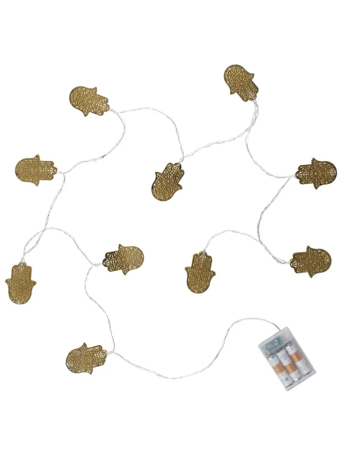 Tausend und eine Nacht inspirieren das märchenhafte Design der FATIMA LED Metall Lichterkette, die jede Innenbeleuchtung in der dunklen Jahreszeit bereichert. Diese zauberhafte Lichterkette, bestehend aus 10 warmweiß leuchtenden LEDs, fängt den orientalischen Stil wunderbar ein und sorgt für eine besonders stimmungsvolle Atmosphäre. Gefertigt aus edlem Aluminium und widerstandsfähigem PVC, präsentiert sich die Kette in einem eleganten Gold-Ton, der subtile Akzente in Ihrer Weihnachtsdeko setzt. Mit einer Gesamtlänge von 195 cm, wovon 165 cm beleuchtet sind, bietet die Lichterkette vielseitige Dekorationsmöglichkeiten für Ihr Zuhause. Ob auf dem Kaminsims, im Regal oder als festliche Ergänzung zu Ihren Wohnaccessoires – diese batteriebetriebene Innenbeleuchtung lässt sich flexibel überall platzieren. Die Lichterketten aus dem BUTLERS Sortiment stehen für kreative Highlights und bringen den Deko-Funken direkt zum Überspringen. Besonders im Herbst und Winter, wenn die Tage kürzer werden, schafft die FATIMA Lichterkette eine behagliche Stimmung und verwandelt Ihr Wohnzimmer oder die Küche in eine Oase der Gemütlichkeit. Sie ist ideal für alle, die eine elegante und doch verspielte Deko-Leuchte suchen, die das Ambiente sanft erleuchtet. Die Kombination aus Metall und Licht macht diese Lichterkette zu einem Must-have für eine stilvolle, festliche Dekoration.